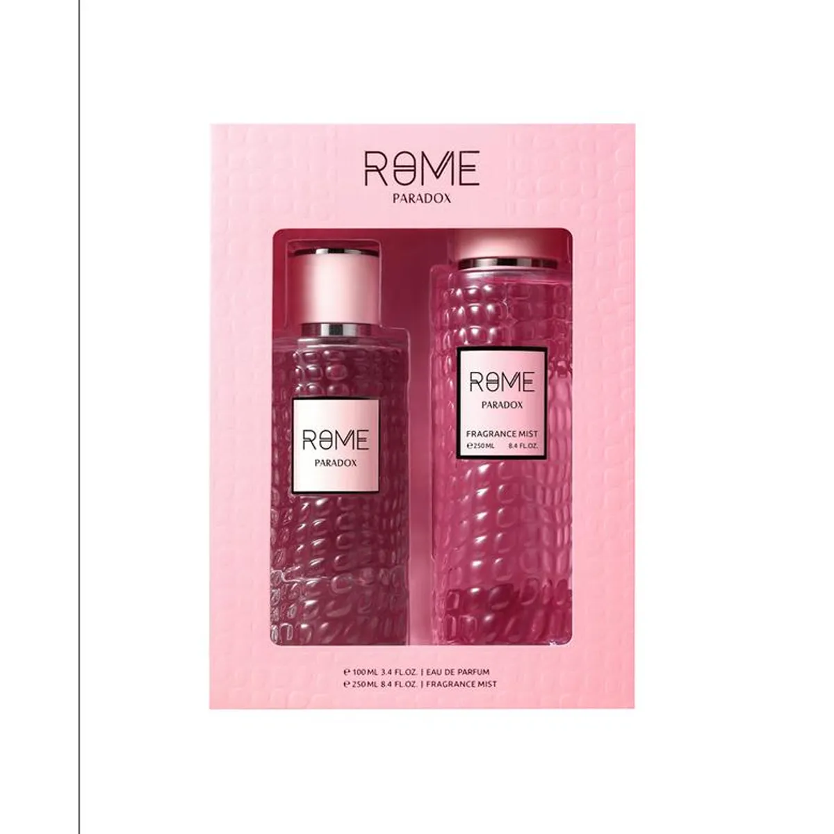 ROME PARADOX 2 PCS SET combines the bold and modern 3.4 oz Eau de Parfum Spray with an 8.0 oz Body Mist, creating a complete fragrance experience for men. It opens with fresh and zesty top notes that energize the senses, followed by a heart of spicy and woody accords. The base features subtle amber and musky undertones, delivering a long-lasting, sophisticated, and masculine scent perfect for daily wear, casual outings, or gifting.